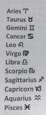 Aries/Libra Taurus/Scorpio Gemini/Sagittarius Cancer/Capricorn Leo/Aquarius Virgo/Pisces |
